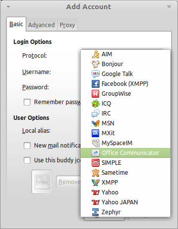 Select Office Communicator from the list and then enter your credentials.